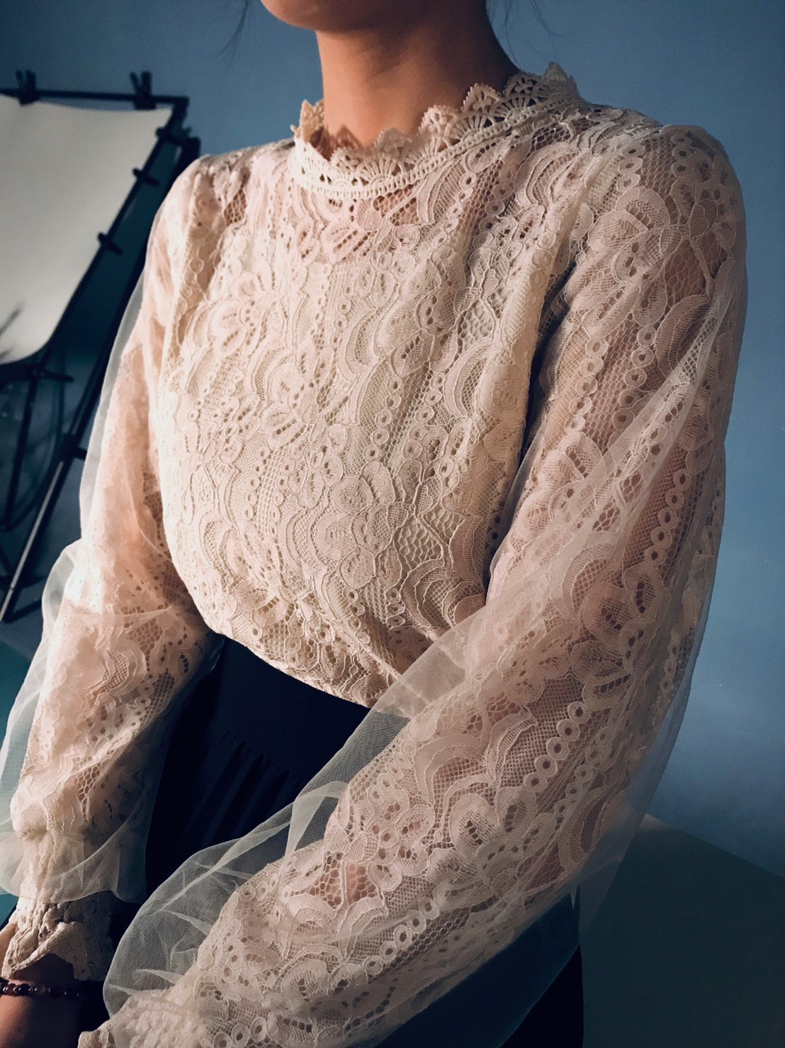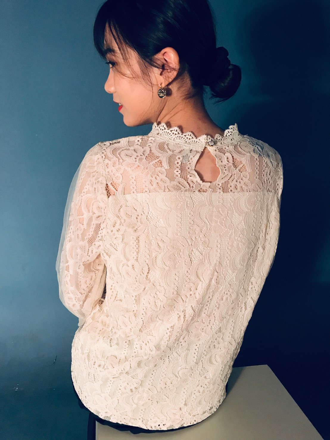 洋氣蕾絲搭襯衫 女韓版長袖上衣 秋冬半高領網紗內搭